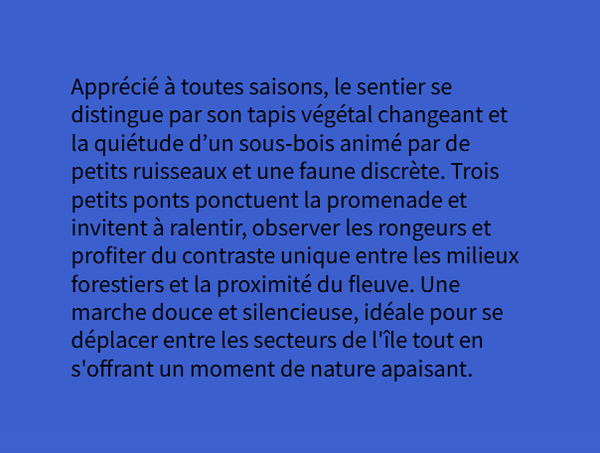 Ici, la marche invite à prendre le temps — celui de regarder les détails, d'écouter les oiseaux et d'adopter le rythme naturel de l'île.