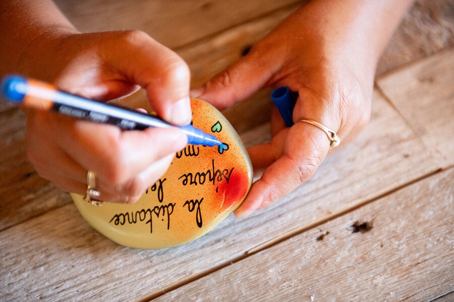La Croche Coeur propose des ateliers créatifs organisés sur demande pour de petits groupes d'au plus quatre personnes. D’une durée d’environ deux heures et accessibles dès l’âge de 7 ans, ces moments de création vous invitent à peindre une ou des roches que vous pourrez ensuite rapporter à la maison en souvenir de votre passage sur l’île.